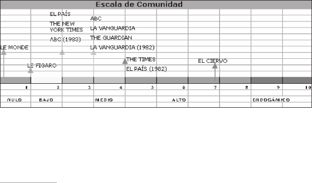 gráfico 18. siTuación en la escala de comunidad de diarios