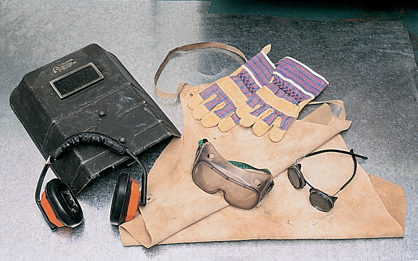 Algunos de los protectores más comunes: orejeras, máscara para soldaduras, guantes, mandil de cuero y gafas (para corte y soldadura)