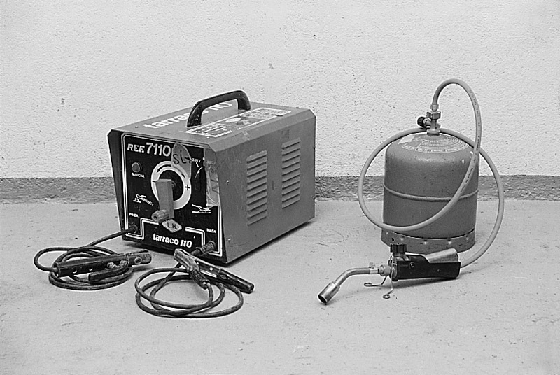 Soldador eléctrico y soldador convencional, compuesto por una bombona de butano y un soplete con boquilla recambiable. Este último permite soldar materiales como estaño, plata u otras aleaciones que requieren poco calor