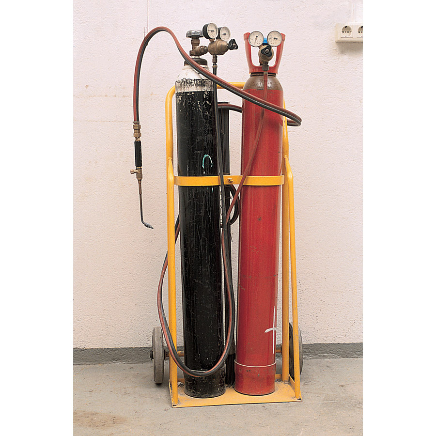 Soplete con una boquilla alimentado con dos bombonas de gas |