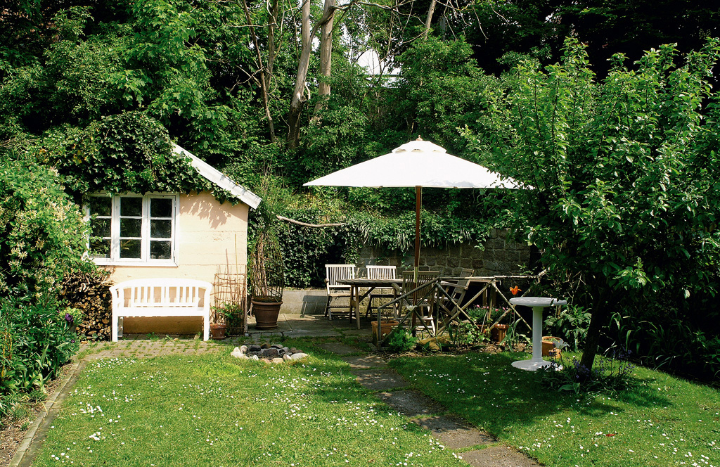 Un ejemplo de jardín pequeño que combina bien con los colores de la casa. (Fotografía: Povl Eskild Petersen/Fotolia)