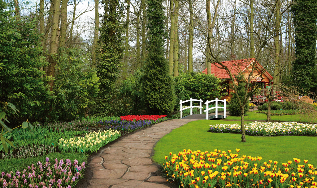 Además de las plantas, un jardín puede albergar más elementos: por ejemplo, los senderos y las fuentes contribuyen a alegrar el conjunto. (Fotografía: Elena Elisseeva/Fotolia)