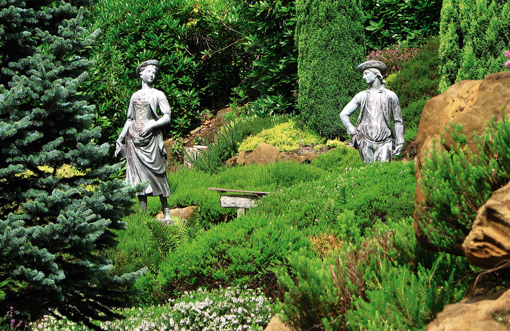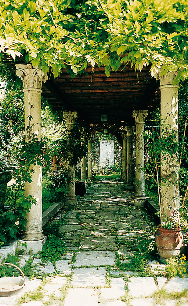 Si, por el contrario, el detalle que se quiere resaltar está muy lejos, puede considerarse como un verdadero cuadro sobre el fondo. Para destacarlo aún más, podemos «encuadrarlo» con plantas o con una pérgola, de forma que la mirada se dirija hacia allí.