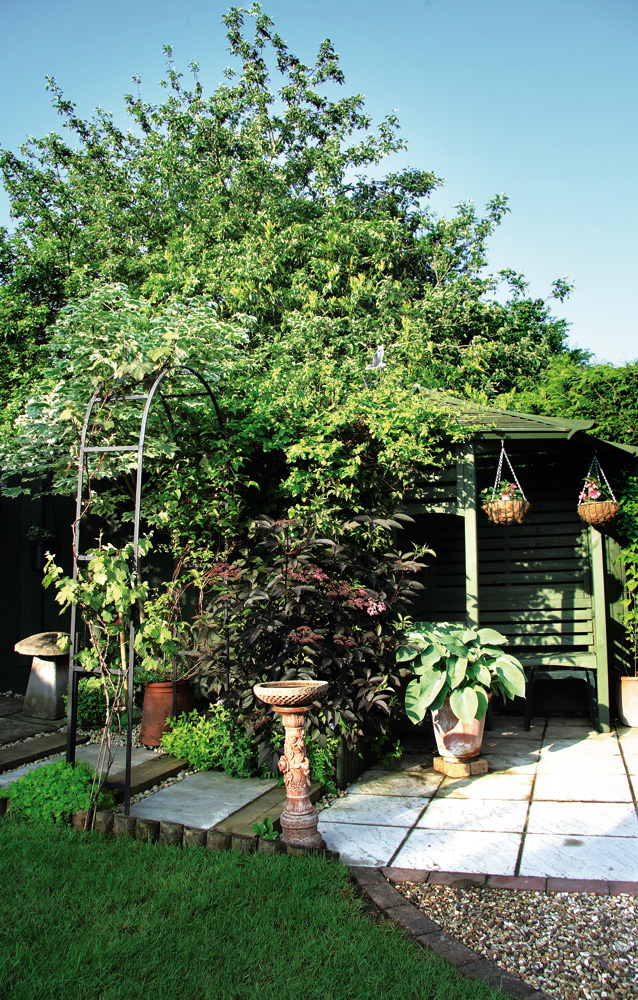 Es probable que el anterior propietario haya tenido buenas razones para prepararlo de esa manera. Quizá los motivos no sean evidentes en un primer momento, pero podrían revelarse con el paso del tiempo. Tal vez un árbol que parece estar en un lugar equivocado esconde una construcción desagradable, amortigua los ruidos de una calle cercana, protege del ardiente sol en verano o resguarda del viento. Aunque una planta nos resulte desagradable y el deseo de eliminarla sea muy fuerte, es necesario considerar que se necesitarían largos años de espera para verla reemplazada. En cambio, se puede intentar mitigar el impacto negativo: por ejemplo, una gran haya, cuyo follaje purpúreo parece entristecer todo el jardín, puede alegrarse plantando cerca algunos arbustos de follaje dorado. Un seto de tejo o de laurel cerezo monótono y uniforme cambiará enseguida de aspecto si hacemos crecer, apoyándose en él, plantas trepadoras de floración generosa (rosas o clemátides).
