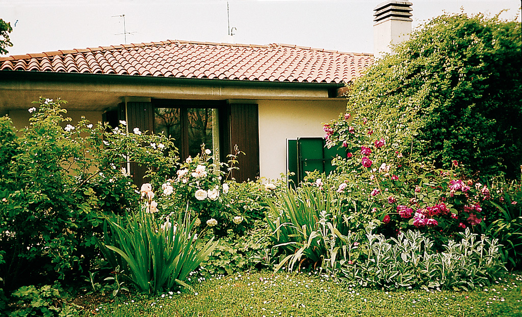 Casa y jardín deberían constituir un conjunto homogéneo y armonioso y ser considerados como una unidad indivisible. De la casa es necesario considerar no sólo la arquitectura y el estilo, sino también el tamaño, la línea, el material utilizado y el color. Los muros oscuros necesitan alegrarse: por ello, las plantas que están junto a ellos deben tener un follaje más bien claro y brillante; los muros blancos, en cambio, precisan colores más fuertes e intensos.