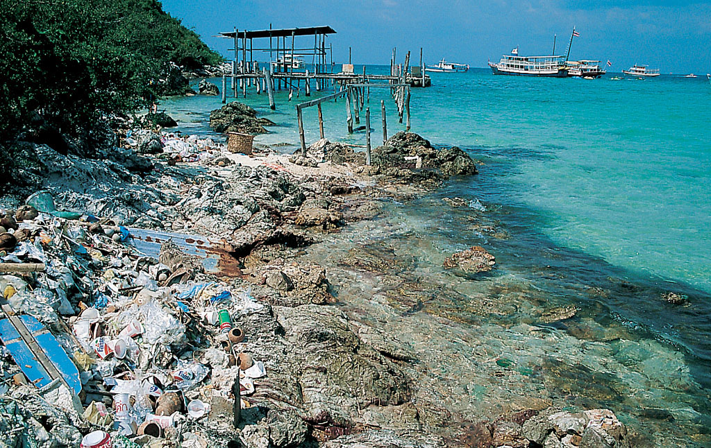 Acosada por los ecologistas, la pesca profesional para el mercado acuariófilo es bastante menos perjudicial que la degradación ambiental causada por el turismo de masas, como se ve en esta playa coralina tailandesa