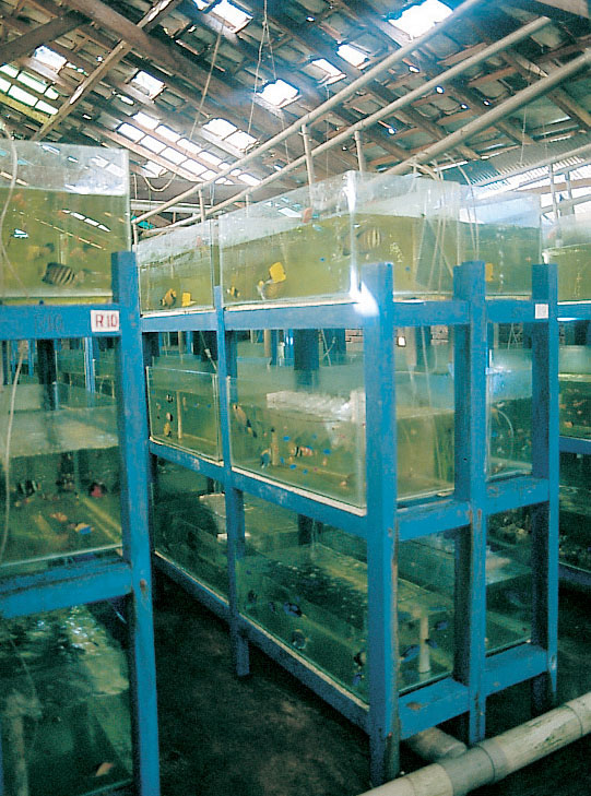 Instalación para la aclimatación de peces coralinos destinados a la exportación (Singapur)