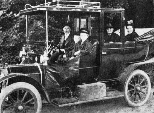 Heisenberg sentado a bordo de un automóvil con varios miembros de su familia. En la parte delantera, además de Werner (en el centro) se encuentran su padre y su hermano Erwin.