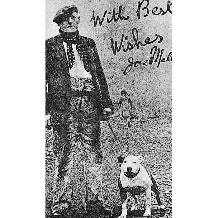 Joe Mallen con el campeón inglés Gentleman Jim, considerado por muchos el mejor staffordshire de todos los tiempos |