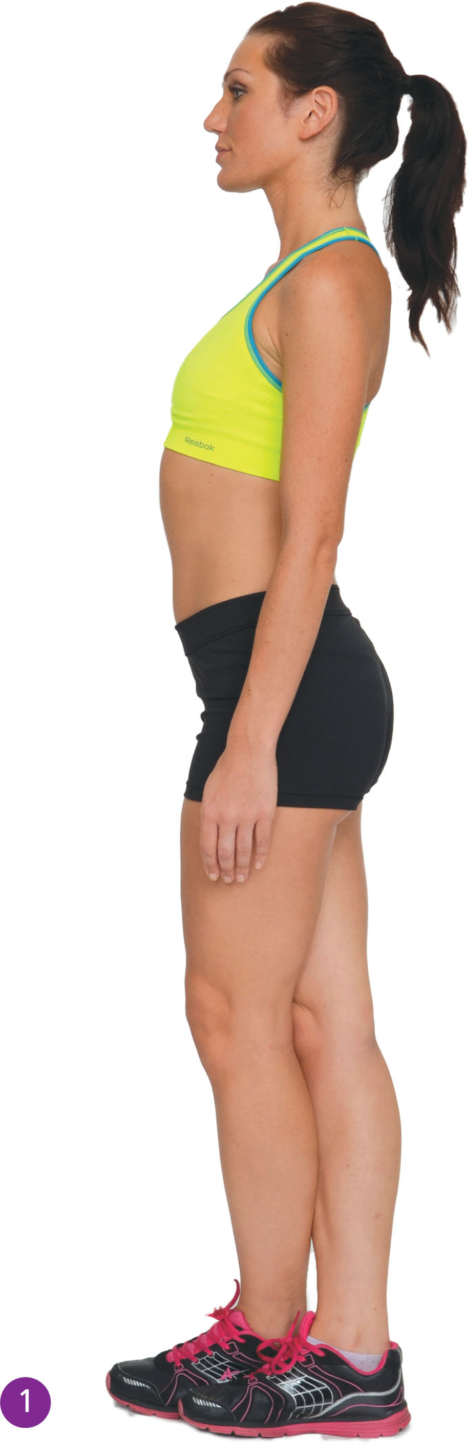 Paso 1 Comienza en posición de pie y cruza el pie izquierdo por detrás del tobillo derecho.