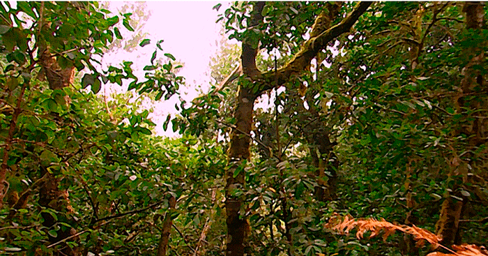 El ecosistema del bosque húmedo más parecido a la selva amazónica (derecha) en el territorio europeo hay que buscarlo una vez más en España, un país de pluviosidad escasa, pero que cuenta con una representación semitropical en los bosques de laurisilva de las islas Canarias (abajo).