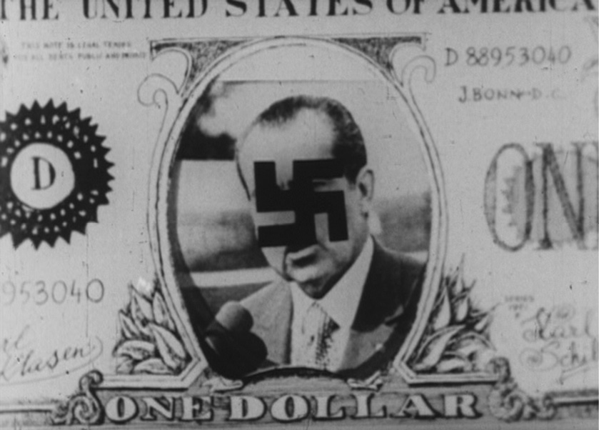Primero, la utilización del montaje ideológico para desmontar y evidenciar representaciones y discursos en torno a la juventud desde las distintas posiciones discursivas. Aquí destacan la sección del “collage” que toma gran parte de la primera sección del filme, que se materializa en una serie de apropiaciones que vienen de la propaganda publicitaria y política interpelando el lugar social de la juventud. Luego, se encuentra presente desde un juego con la interpelación y la crítica a “la cuarta pared”, una profundización a esta crítica a las “determinaciones” cuando sitúa a un personaje que realiza un juego de palabras con las siglas políticas escritas en un pizarrón (“DC”, “UP”) mientras interroga al espectador sobre el lugar donde se posiciona. El personaje en cuestión no pertenece al “universo observado” sino que es un actor puesto a jugar con la cámara y las siglas, que rompen con la observación pasiva, estableciendo una capa o nivel discursivo dentro de la estructura.