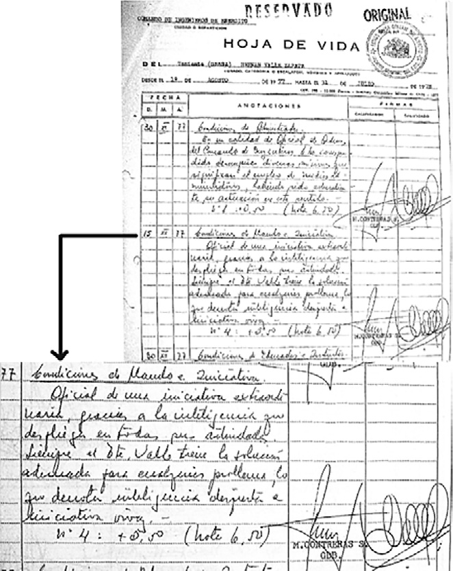 «Estábamos perdidos. En ese momento llegó el teniente coronel Manuel Contreras, también con tenida completa. Se paró al frente acompañado de su plana mayor. Cinco y media de la mañana. Escuetamente, sin gritar ni hacer arengas, nos explicó que quería una formación tipo americana. Luego de eso se fue».