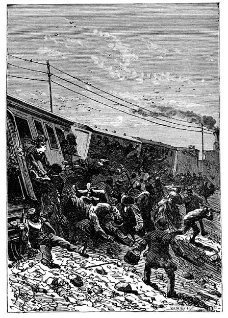 Doce verstas antes de llegar a la estación de Nijni-Novgorod, en una curva muy brusca de la vía férrea, el tren experimentó un choque violentísimo, y luego, por espacio de un minuto, corrió por la pendiente de un terraplén.