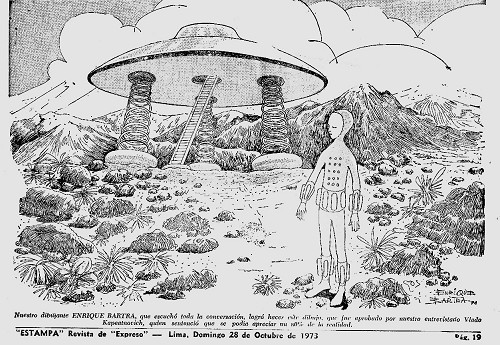Dibujo realizado por la revista Estampa del diario Expreso (1973), basado en las experiencias de Kapetanovic.