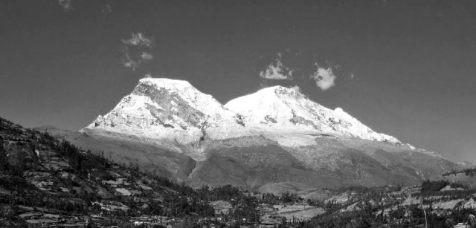 El nevado Huascarán, visto desde el pueblo de Yungay.