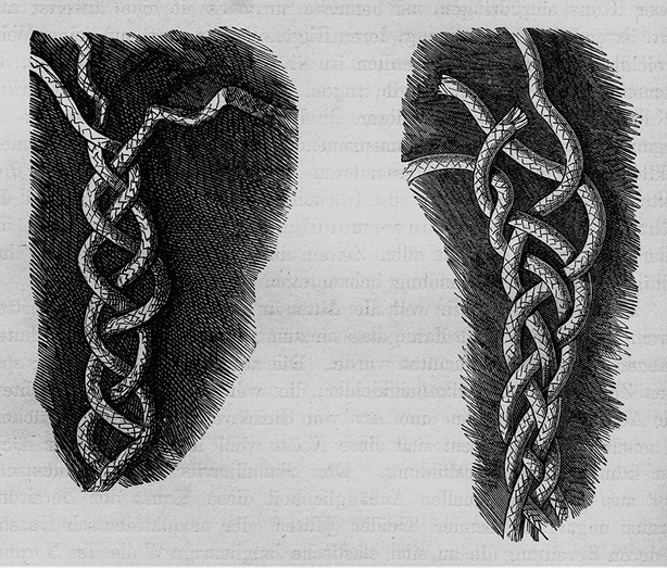Debido a estas diferencias evidentes entre la carpintería y la cestería, ¿cómo podríamos argumentar que la juntura del carpintero es un tipo de nudo? Sin embargo, este es el argumento propuesto por Gottfried Semper en su tratado de 1851, The Four Elements of Architecture. Ya hemos visto cómo Semper veía a la carpintería y a los textiles como oficios complementarios dentro del campo general de las artes tectónicas, con el nudo como la operación más elemental y común entre ambos. Fascinado con la etimología, Semper encontró apoyo para sus ideas en la afinidad existente entre las palabras alemanas Knoten (nudo) y Naht (juntura, costura), ambas aparentemente compartiendo la raíz Indo-Europea noc –de donde viene nexo y necesidad–2. Lo que está en juego –de lo que Semper estaba muy consciente– es más que una cuestión meramente de técnica. Más bien toca la cuestión más fundamental sobre lo que quiere decir “hacer cosas”. El carpintero y el tejedor están impulsados por el mismo mandato del hacer, y para ambos no puede haber un “hacer” sin un “juntar”. Sin embargo, la necesidad del nudo no es una necesidad rígida y quebradiza, permitiendo libertad solo en los espacios que se dejan entre medio, sino una necesidad flexible que admite el movimiento como su condición y también su consecuencia. Vale decir, no es la necesidad de la predeterminación, cuyo antónimo sería el azar, sino una necesidad nacida del compromiso y la atención a los materiales y a los caminos que quieran andar. Su antónimo es la negligencia.