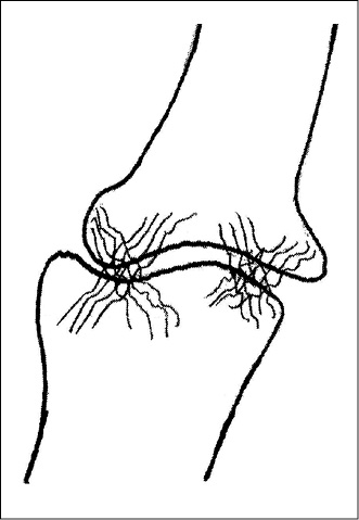 En la ilustración, de su Beiträge zur bildnerischen Formlehre (1921/12), el pintor Paul Klee muestra cómo los huesos de una juntura están unidos con ligamentos. Gracias a su incrustación en la matriz lineal, los elementos óseos en forma de globo pueden formar una unión flexible y simpática.