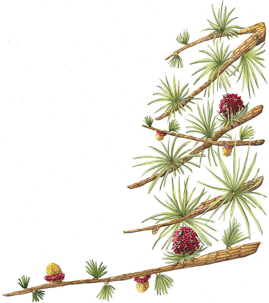 Los significativos del alerce aluden a la victoria. El color amarillo vivo de las flores masculinas y el rosa de las femeninas, asociadas al verde claro de la conífera, sintetizan, en un maravilloso escenario alpino, el retorno de la capacidad de orientar la energía de la vida hacia objetivos precisos. El color amarillo simboliza la capacidad de decisión. El color verde confirma que, a la decisión, le seguirá la acción realizadora. El color rosa asegura una conclusión positiva lineal y sin contratiempos. El color verde claro de la conífera simboliza una autovaloración positiva de la propia habilidad al enfrentarse con los desafíos cotidianos, coraje cuando es necesario afrontar imprevistos aparentemente insuperables y, finalmente, perseverancia en la puesta a punto de las propias cualidades positivas.