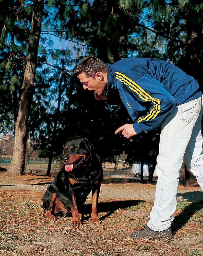 La característica principal de la figura dominante que el cachorro quiere y debe encontrar en el seno del grupo es la experiencia. Un déspota que considere al rottweiler como si de un arma se tratara acabará teniendo un animal que por inseguridad atacará sin motivo aparente. Y, por el contrario, una persona aprensiva que crea que un perro es más bueno que un santo tendrá como compañero un rottweiler que al no poder convertirse, por motivos obvios, en el jefe de la manada, le exigirá consentimiento y obediencia, y dará salida a la agresividad inherente al carácter de la raza mostrándose agresivo con los animales más débiles, empezando por todos los congéneres que encuentre en su camino.