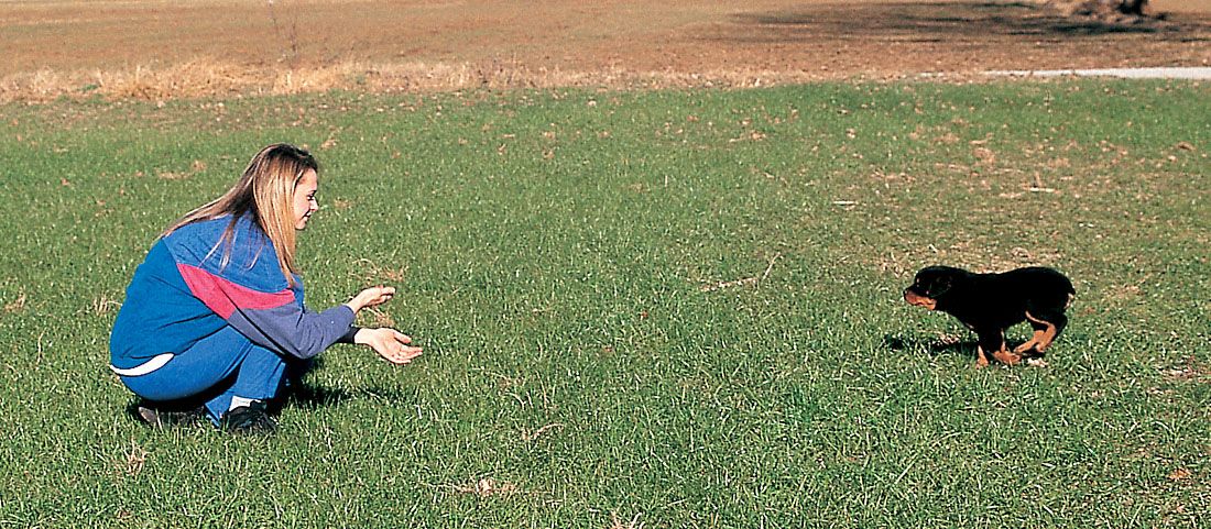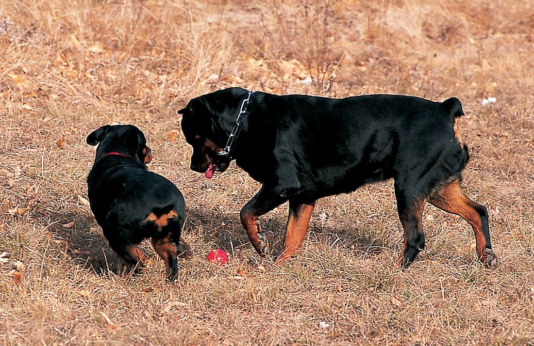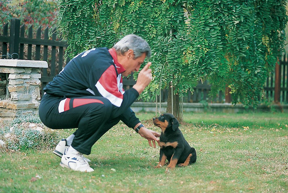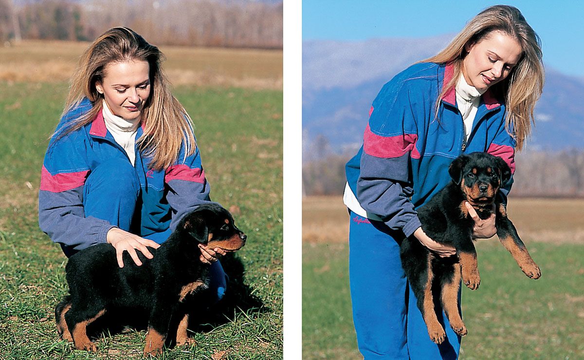 Pero tampoco se necesita mucho para que nuestro cachorro se convierta en un rottweiler equilibrado, en un compañero feliz y que al mismo tiempo sea el defensor de nuestra familia y sólo se comporte con agresividad cuando las circunstancias lo requieran. Hace falta tener muy claros los comportamientos que esperamos de él y dárselo a entender con coherencia y firmeza a partir del momento en que entra en su nueva casa. Las malas costumbres de los primeros días se perpetúan inevitablemente.