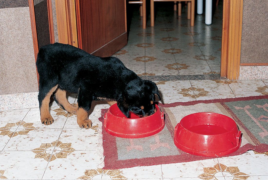 El bocado que le ofrecimos al llegar a casa era sólo una forma de hacer que se sintiera en casa, y ahora ya tendrá hambre de verdad. Le prepararemos la comida que nos ha proporcionado el criador en la cantidad que nos haya aconsejado. Puede ocurrir que por culpa de la nueva situación rechace la comida. No habrá que preocuparse, al cabo de unos minutos le retiraremos la comida y no nos ocuparemos más de su alimentación hasta el día siguiente: entonces tendrá hambre y superará así la tristeza de la separación.