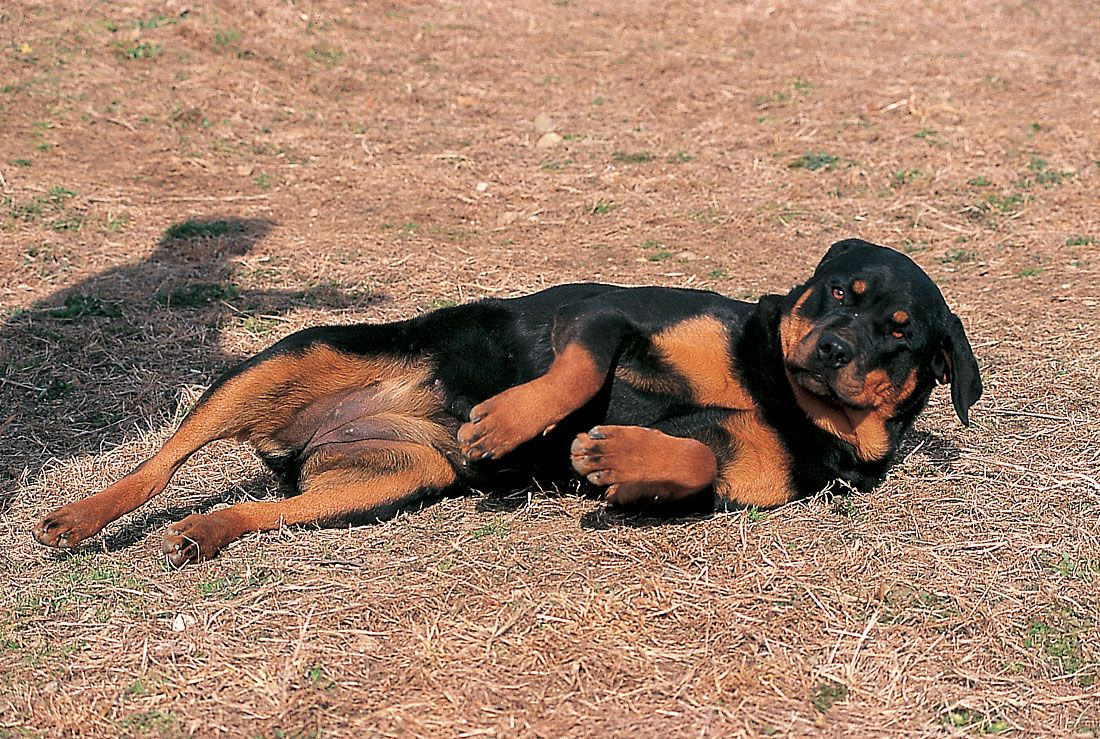 El hecho de revolcarse procura al perro una sensación muy placentera. Lo hace cuando está contento y no se siente amenazado, y a veces después del baño, especialmente si tiene a mano arena o tierra seca. A veces se da un revolcón sobre materiales orgánicos en descomposición: este es un comportamiento típico del animal salvaje que no quiere dejarse reconocer por una posible presa a través del olor corporal. Se trata de otra conducta ancestral y no es demasiado difícil enseñarle a no hacerlo, aunque se requiere una cierta cautela.