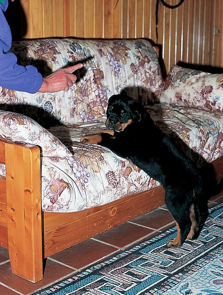 Tal como hemos repetido en varias ocasiones, no se debe dar total libertad a un cachorro; el animal no sabría dónde están los límites que se le imponen y no tardaría en creerse el dueño de la casa, y no es ese su lugar. Además de impedirle «robar» habrá que ponerle otros tipos de límites: una sala en la que no debe entrar, el sillón del «jefe» en el que no debe subirse. No deberá ni podrá necesariamente entender el porqué: simplemente se dará cuenta de que no todo le está permitido y encontrará el lugar que le corresponde en la jerarquía.