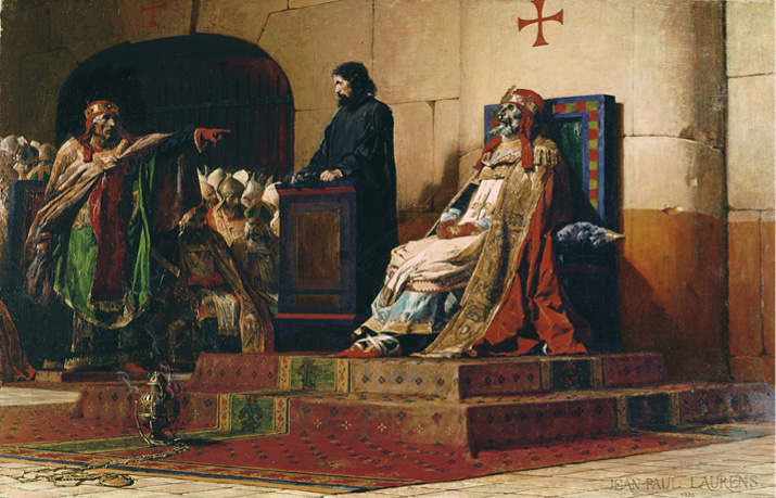 El obispo de Roma tuvo que recorrer un largo camino hasta lograr que se le reconociese como la cabeza de la Iglesia. En la mayor parte de Oriente no lo logró: los obispos se negaron a aceptar la preeminencia del de Roma y eso llevó al cisma ortodoxo. Aun en los antiguos lugares del Imperio de Occidente donde lo logró, su autoridad en muchos casos era más que discutible. En España, y de nuevo en época visigoda, eran los reyes quienes convocaban y presidían los concilios de Toledo. En ellos se discutían no solo cuestiones de fe sino también de política, dado que ambos temas estaban intimamente unidos. Es más: los reyes visigodos españoles eran ungidos con óleos, siguiendo un ritual inspirado en las escrituras bíblicas.