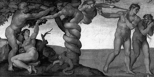 Miguel Ángel, La Caída del Hombre, pecado original y expulsión del Paraíso, 1509.