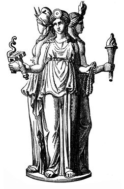 Una visión diversa nos presenta la mitología griega más arcaica, en donde la luna era representada por una tríada de diosas que simbolizaban las tres fases del astro, a menudo ligadas con las tres edades o estadios de la mujer ( doncella, madre, anciana sabia ). Así, había una diosa para la luna creciente, asociada con la etapa juvenil; este sitio era, generalmente, ocupado por Artemisa, la diosa cazadora, virgen que goza de su independencia y abomina la sujeción al varón. En segundo lugar, estaba la diosa de la luna llena, vinculada a la etapa de madurez, la cual solía presentarse bajo la figura de Selene. Por último, la fase menguante de la luna se asociaba siempre con la enigmática diosa Hécate, arquetipo de la vieja sabia, diosa de las encrucijadas, a quien la poetisa Safo distinguiera con el título de “ la reina de la noche" .
