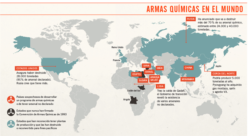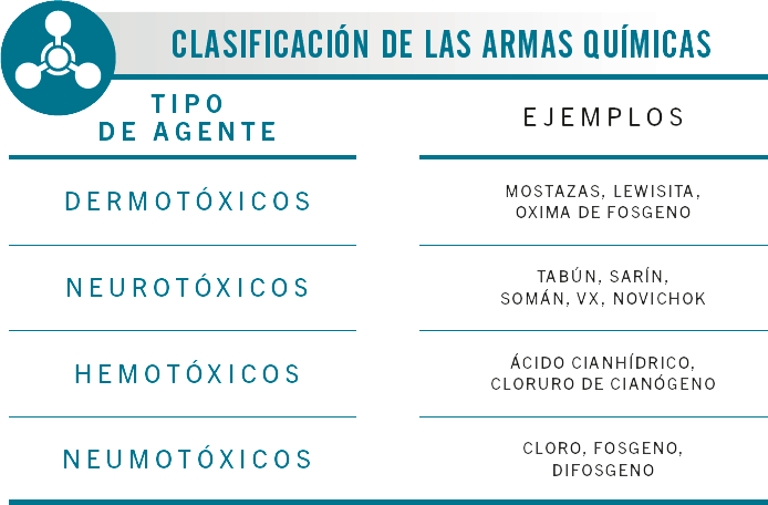 Las armas químicas son las «armas nucleares» de los países pobres, que las utilizan como elemento disuasorio. Se estima que actualmente existen en el mundo al menos nueve millones de unidades de agresivos químicos altamente tóxicos. Algunas sustancias químicas industriales tienen una elevada toxicidad, aunque no se consideran armas porque no han sido fabricadas para causar daños. Sin embargo, en manos de terroristas podrían convertirse en un agresivo capaz de provocar un elevado número de víctimas, además de los demoledores efectos psicológicos que implican. •