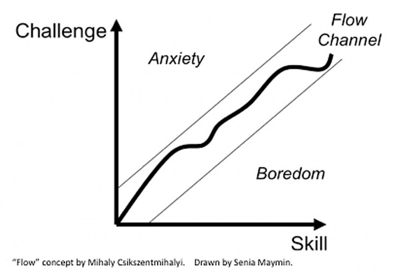 punto máximo cuando los desafíos están en justo equilibrio con las habilidades personales