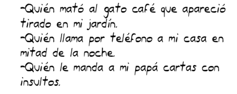 Aunque mi misterio era el más impreciso (“qué está ocurriendo que mis papás nos están ocultando”), los convencí de que era apremiante.
