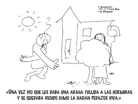 Uno de los perros murió. Trajeron un piano y lo tocaron casi sin cesar, día y noche, durante una semana y luego lo dejaron de lado. Enterraron el perro detrás del garaje y pusieron una cruz en el cuello de una botella de whisky medio hundida en la tierra. Pero no habían enterrado al chucho lo bastante hondo y empezó a oler. Una noche una mujer fornida invadió la tumba y quemó los restos en el incinerador, maldiciendo a voz en grito, violentamente, riéndose y luego vomitando y llorando. «No es la muerte lo que nos duele, es hacernos viejos, cada vez más viejos... las manos arrugadas, la cara arrugada... ¡Joder, hasta el trasero lo tengo arrugado! Joder, joder, la vejez: ¡la odio, la odio!»