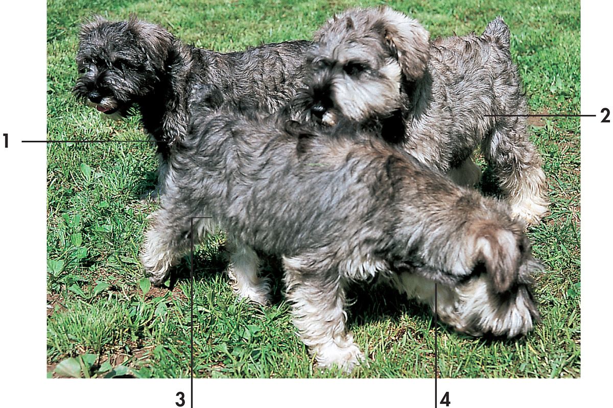 En el caso de los schnauzer enanos hay que admitir que las diferencias de color a veces van acompañadas de diferencias anatómicas bastante claras.