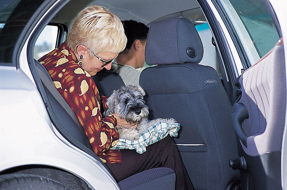 Si vamos solos a buscar al cachorro, deberemos utilizar una jaula de viaje. Si el viaje es muy largo, programaremos varias paradas. Al bajar del coche tendremos la precaución de llevar el cachorro en brazos. Está absolutamente prohibido dejarlo suelto en el habitáculo, ya que es peligroso para el animal y para el conductor. Tampoco es aconsejable instalarlo en la parte posterior, aunque el automóvil esté equipado con una malla divisoria: el cachorro rodaría de un lado a otro y se asustaría. Un primer viaje traumatizante puede hacer que el animal se sienta incómodo en automóvil toda la vida; y al contrario, una primera experiencia tranquila servirá para que se acostumbre rápidamente al coche.