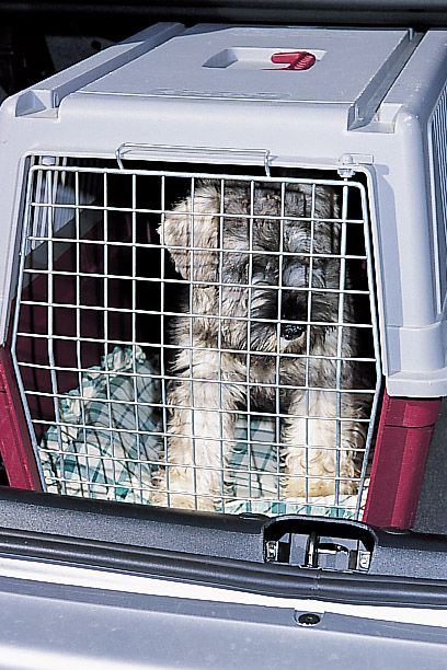 — de viaje: en el coche, la jaula es el lugar más seguro para el perro, porque se siente protegido y no corre el peligro de ir de un lado para otro en las carreteras con muchas curvas, ni de golpearse en el morro en caso de frenazo;