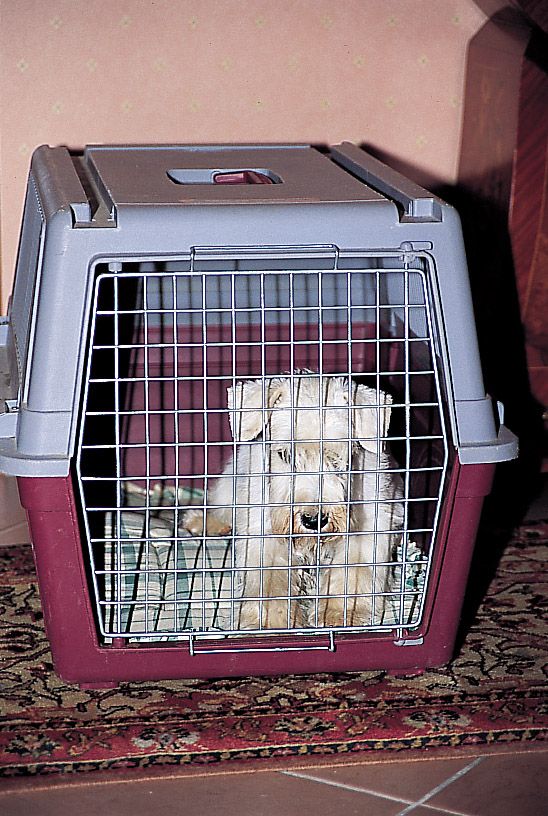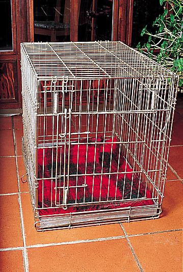 Un buen sistema para tener al cachorro bajo control es convencerlo para que pase algunos ratos en lo que él deberá considerar una madriguera, y que para nosotros puede ser, indistintamente, una jaula plegable o una jaula de viaje (como las que se utilizan para viajar en avión).