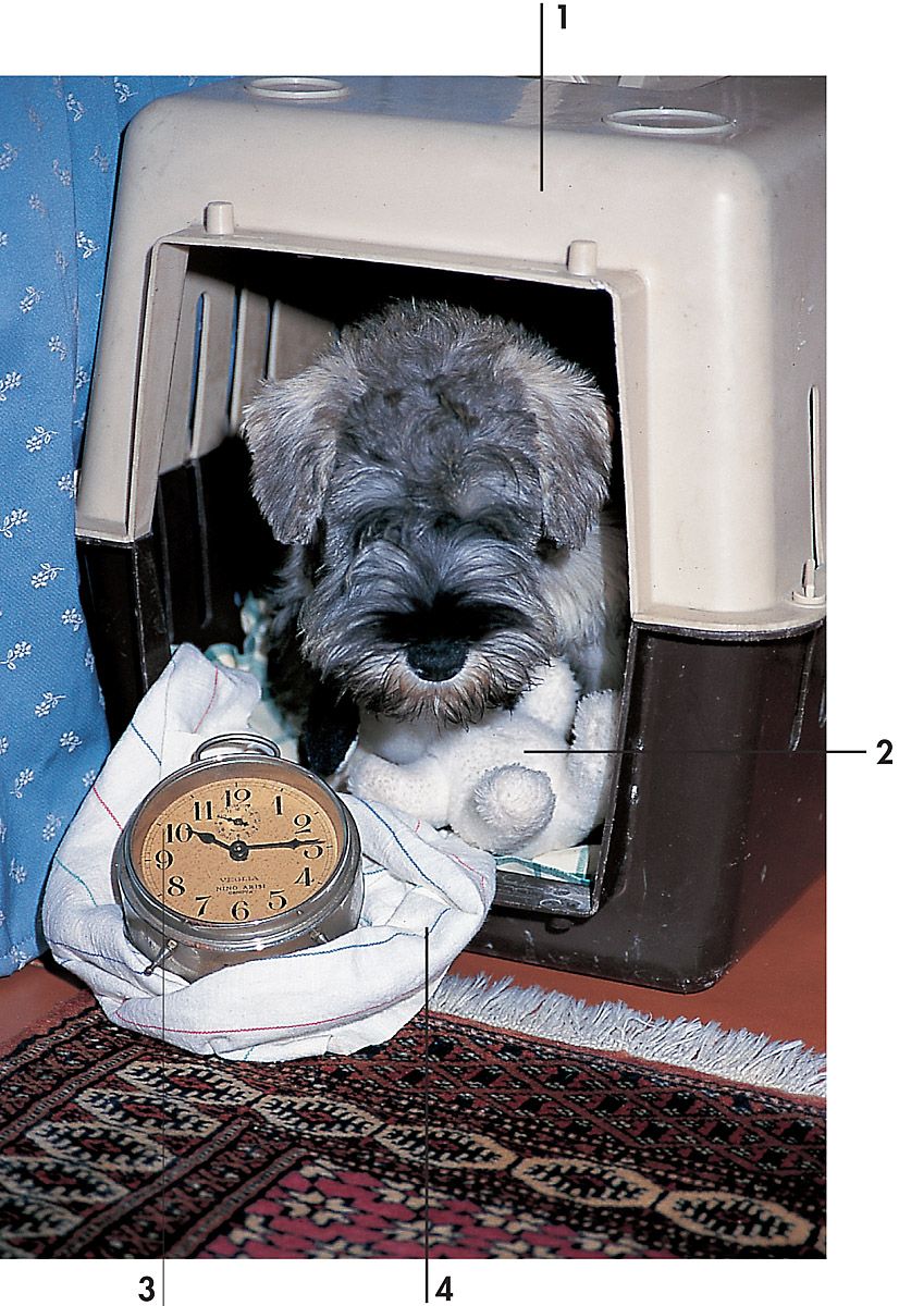 Tendremos que acostumbrarlo desde cachorro instalándolo en la jaula cuando veamos que está a punto de dormirse. En otros momentos del día podemos introducir en la jaula un hueso para roer, unas galletas o su juguete preferido.