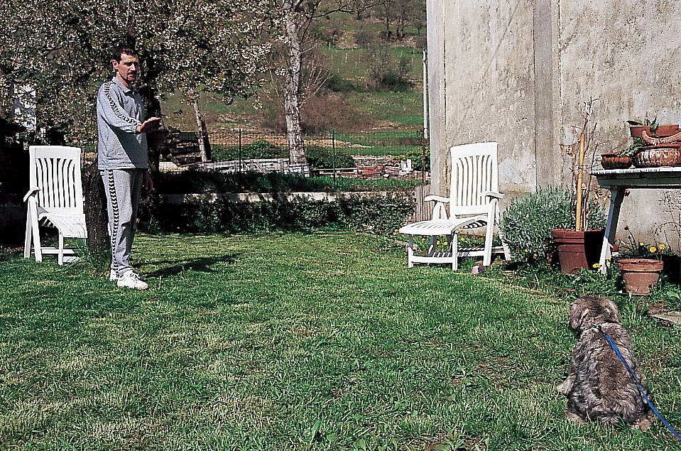 Cuando el cachorro entienda que debe estar quieto, aunque sólo sea durante unos segundos, lo felicitaremos efusivamente. En las siguientes lecciones, a medida que el cachorro vaya entendiendo lo que queremos de él, nos alejaremos cuatro o cinco pasos, no más, y lo dejaremos en posición treinta segundos como máximo. Se deberán alternar las posiciones de sentado y de tumbado. Este ejercicio es difícil para el cachorro, y su aprendizaje requiere paciencia y progresividad. Se puede repetir una o dos veces al día.