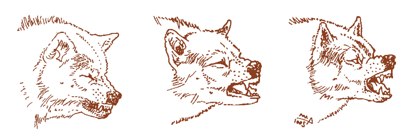 El ladrido. Un animal salvaje adulto casi nunca ladra, aunque puede hacerlo perfectamente; en cambio, todos los cachorros son muy «habladores». El ladrido era una señal muy útil para el hombre, a través de él, el perro le indicaba la presencia de caza o le alertaba de la llegada de intrusos.
