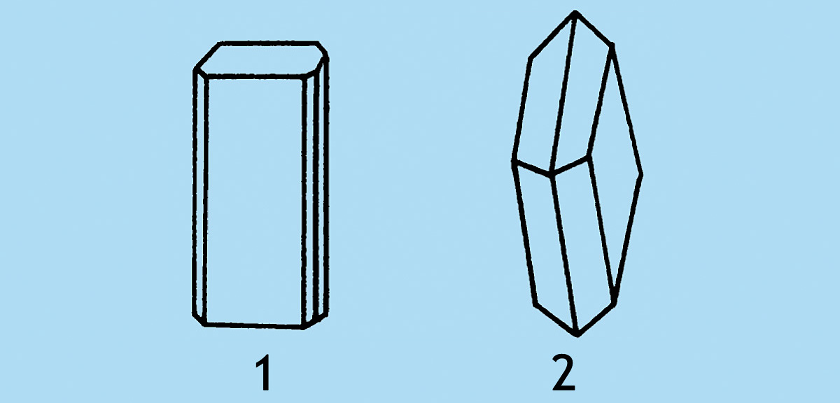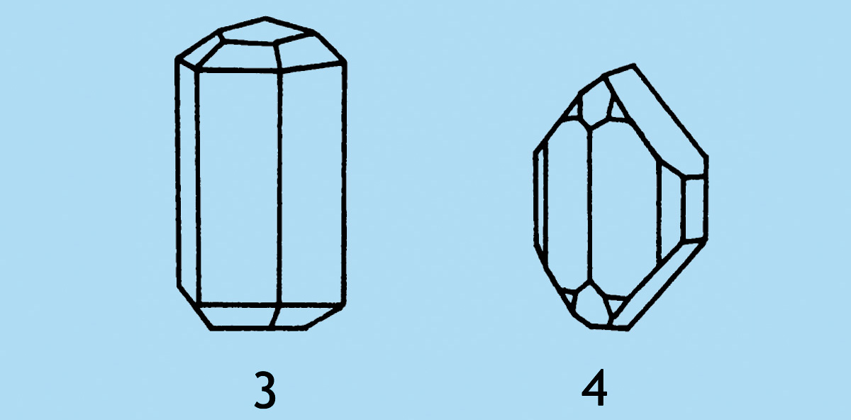 • Sistema y tipo de cristalización: por un lado, se refiere a la clasificación en uno de los siete sistemas, y por el otro, a la forma cristalina. Por ejemplo: el cristal de roca pertenece al sistema trigonal y presenta una cristalización en forma de cristales hexagonales y de prismas.