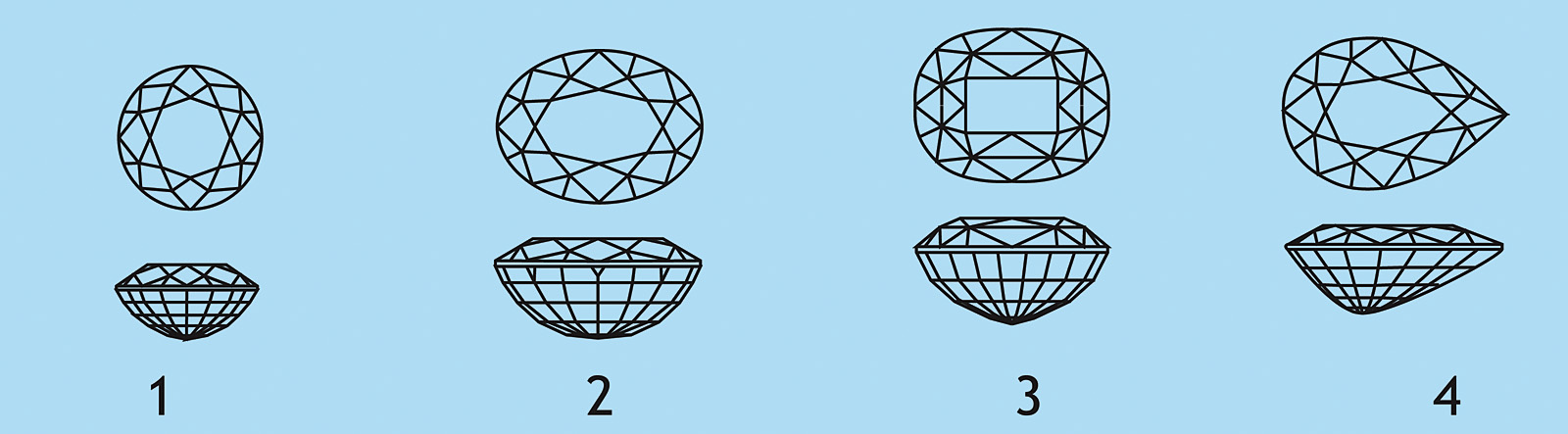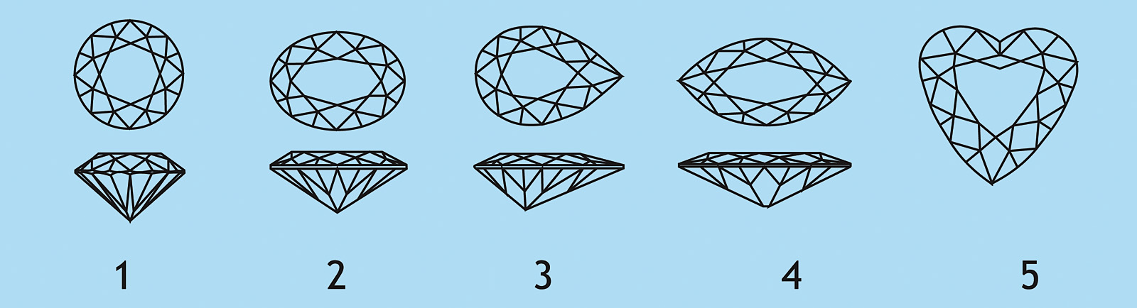 1. redonda; 2. oval; 3. pera; 4. marquise o navette; 5. corazón