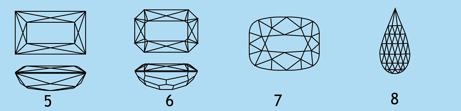 PRINCIPALES FORMAS DE TALLA EN FACETAS (para piedras transparentes)
