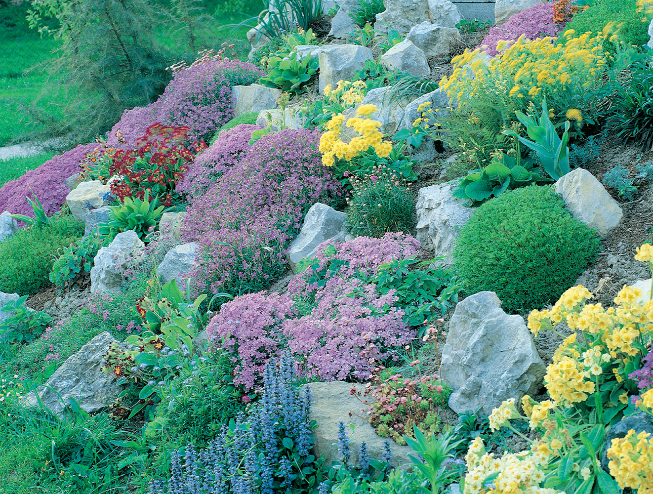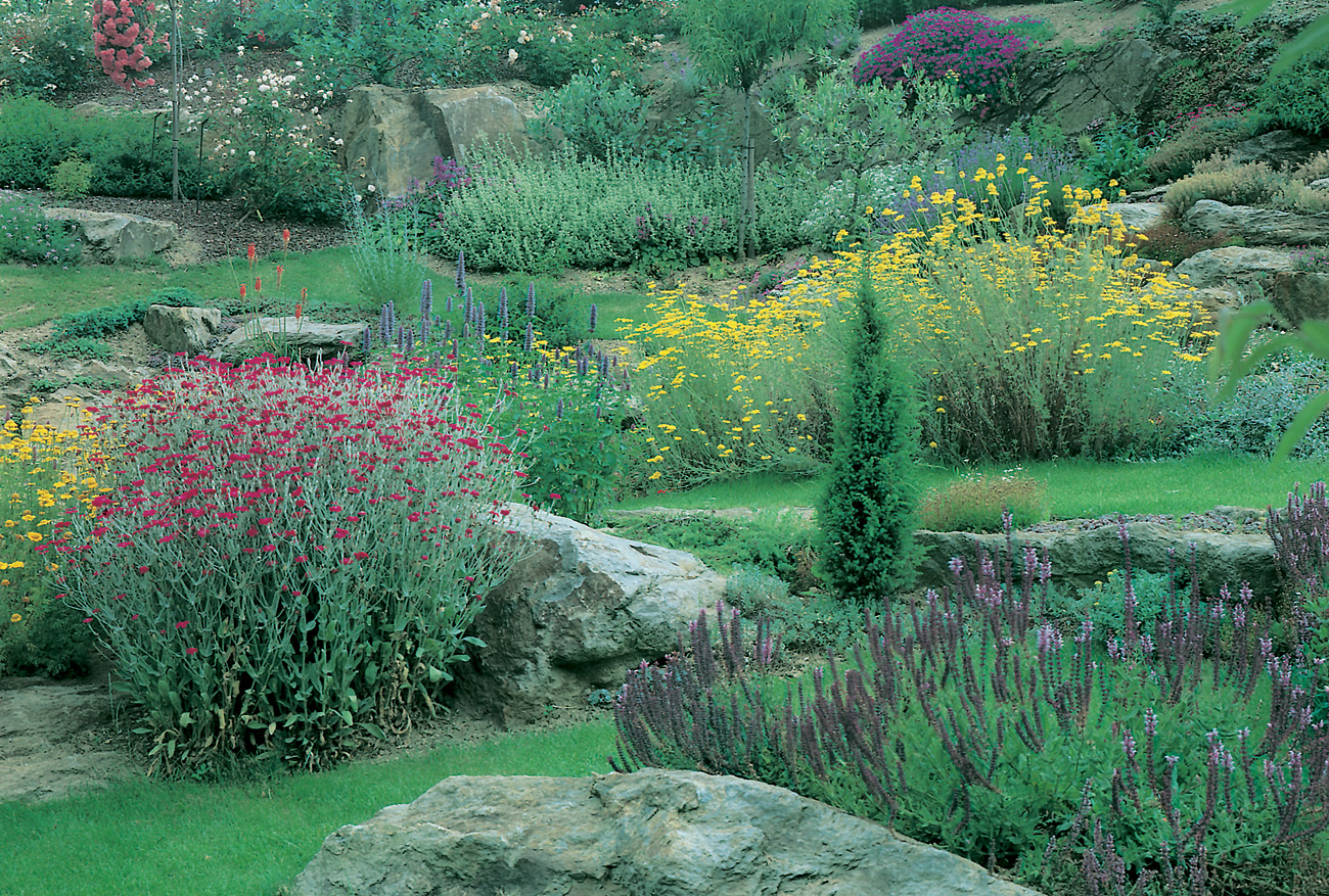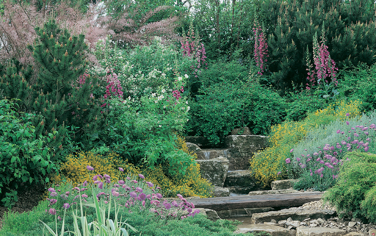 En este jardín de rocalla de estilo inglés, es evidente la variedad de especies vegetales