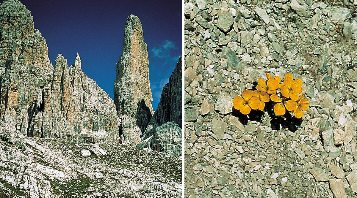 Las zonas donde se han producido desprendimientos de rocas son lugares privilegiados para las especies herbáceas pioneras. (Fotografías del autor)
