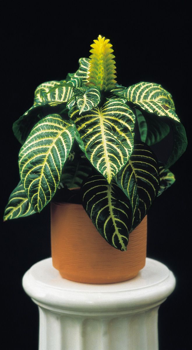 La colocación sobre una peana destaca el follaje de plantas como Diffenbachia seguine y Aphelandra squarrosa (esta última, en la imagen)
