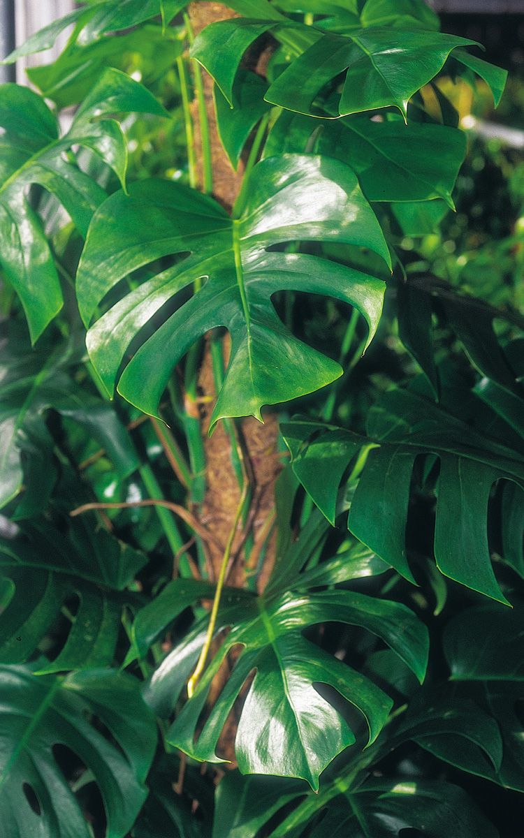 Numerosas especies de plantas de interior de porte trepador como Monstera deliciosa requieren un tutor especial capaz de mantener la humedad, donde la planta pueda fijar las raíces y absorber el agua