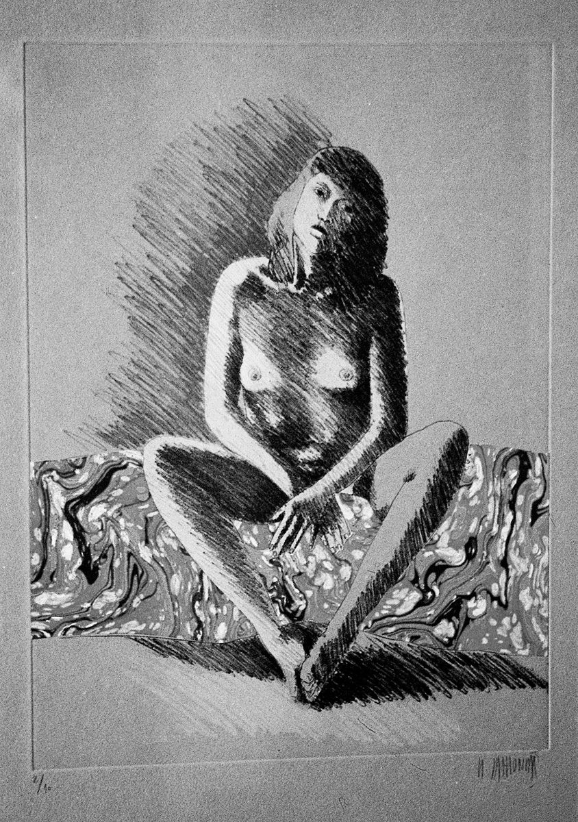 Femmes, grabado al lápiz y collage de Michel Mathonnat, 1996